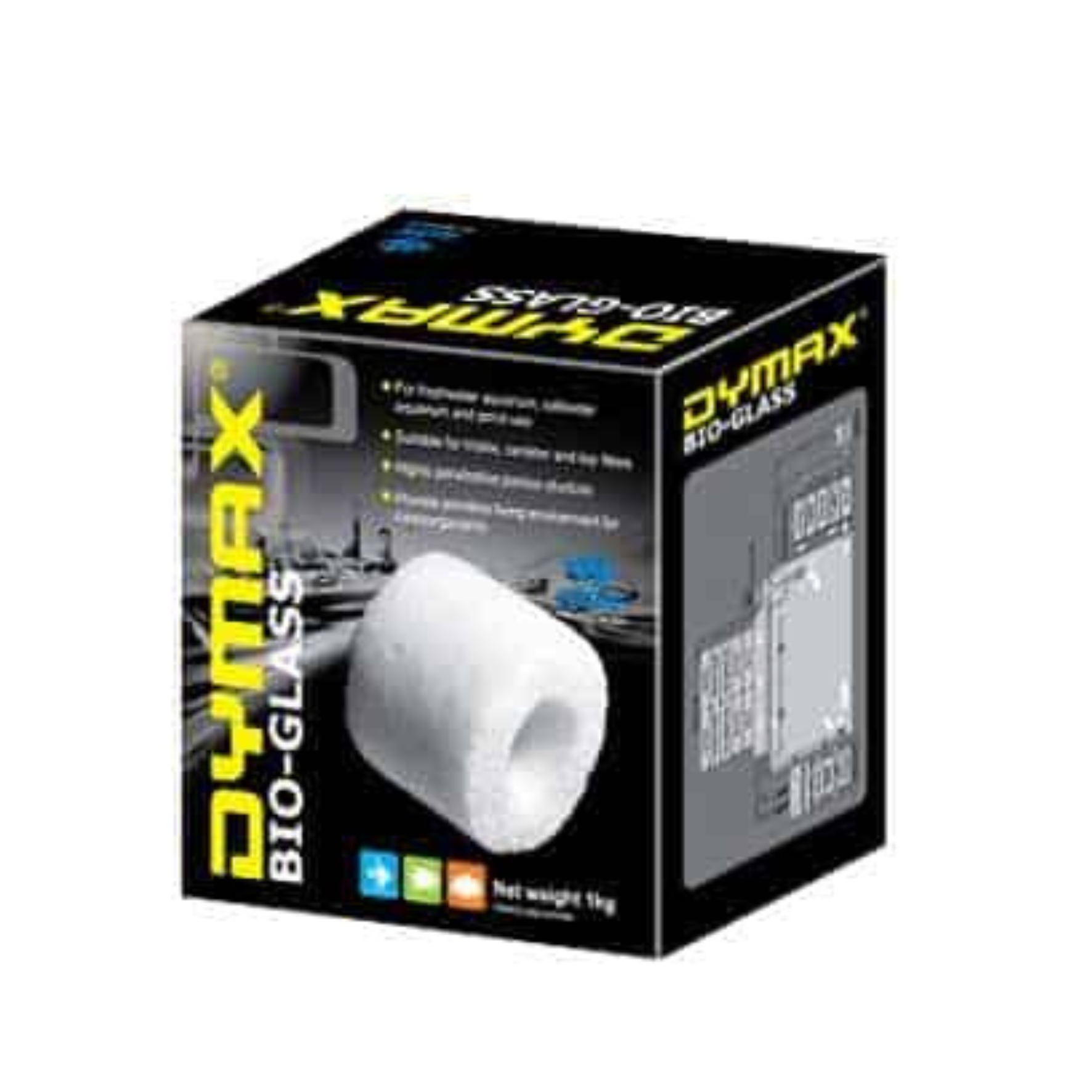 Dymax Bio-Glass rings are made of non-toxic inert material that promote biological filtration and will not break down in the filter; not alter pH value nor affect water hardness.
