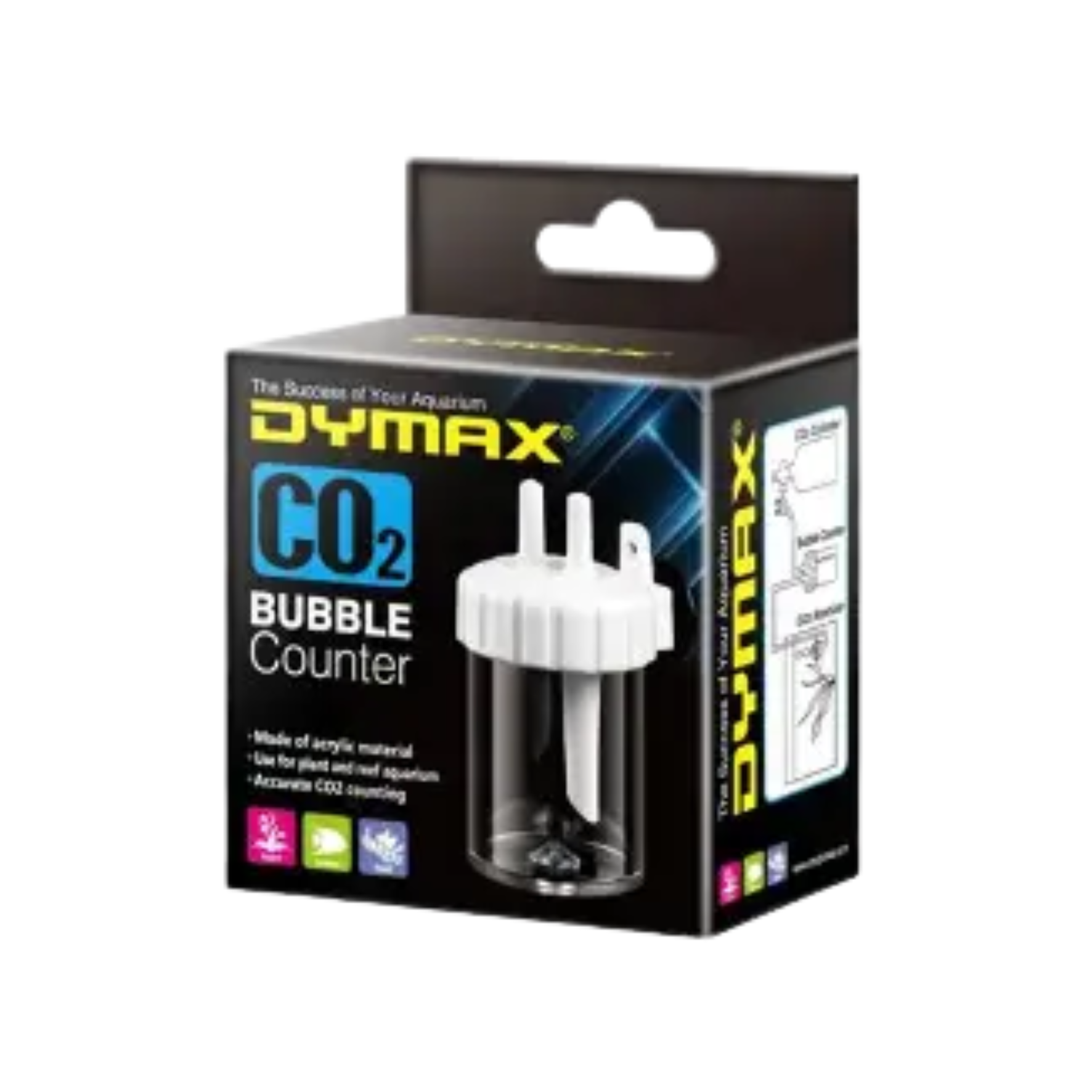 The Dymax CO2 Bubble Counter is designed for both planted & reef aquariums. For the planted aquarium, it is used to gauge the amount of CO2 applied to the plants as a fertiliser for optimum growth. For the reef aquarium, it is used if a calcium reactor is in place, to monitor the amount of CO2 applied so as to dissolve calcium in the water. The Dymax CO2 Bubble Counter provides an accurate reading of CO2 with its well designed structure and the durability of material used, to help you succeed with your aquarium.
