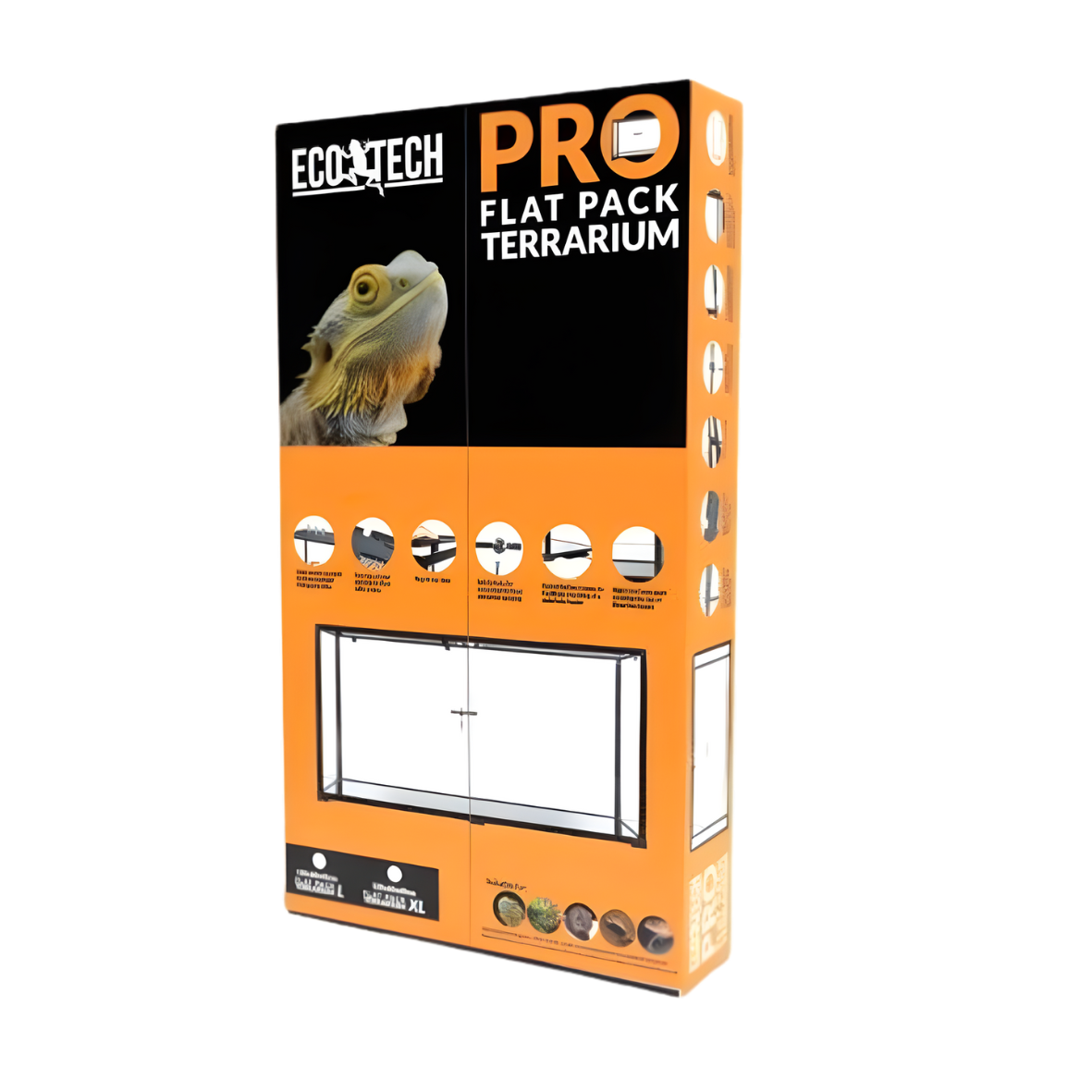 The Eco Tech Flat Pack Terrarium features sliding glass doors, mesh top and handy rear cable access ports. The raised front means that deep substrates can be used for burrowing or to create Bio-Acive enclosures.